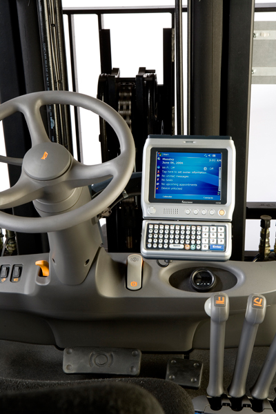 Компактный размер с экраном во всю ширину устройства повышает уровень безопасности, создавая максимальный обзор оператору вилочного погрузчика. Возможность беспроводной связи и бесконтактного получения информации повышают производительность и освобождают от "паутины" проводов.